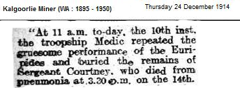 Pte Courtney was a single man, 21 years of age, his next of kin being his father at No. 1 State Mill at Manjimup, Western Australia.