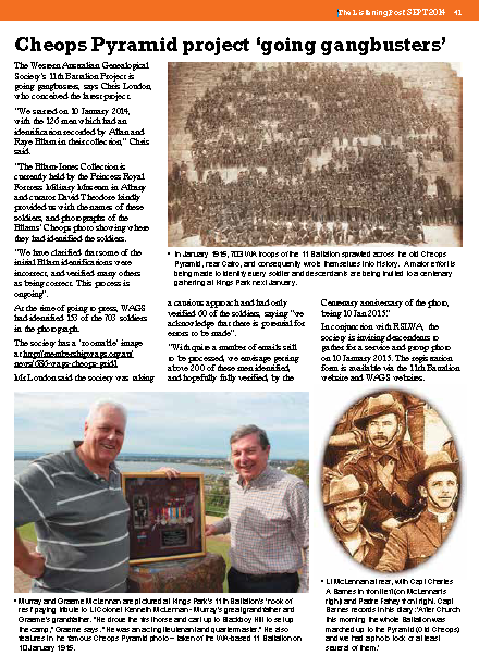 Cheops 100 years on - Including video of TV coverage of the Commemoration Service by Channel 9 10 Jan 2015