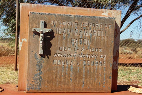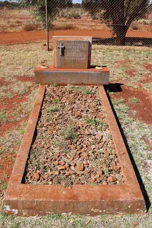 Rest Places: Austin Cemetery, Broad Arrow Kurawah Cemetery, Cockatoo Creek East Kimberley, Condon Cemetery, Fields First Cemetery, Forrest River Mission East Kimberley, Lissadell Station Kimberley, Mandurah Old Churchyard, Mangowine, 1st Meekatharra Cemetery, Menzies, Mt Newman Cemetery, Old Cue Cemetery, Old Wannamal Cemetery, Onslow Pioneer Cemetery, Ord River Station Cemetery, Fitzroy River, Rottnest Island, Sheep Island Camden Sound, Springhill Private Cemetery, St John's Churchyard Bootenal, Turee Creek Station, Wickepin Pioneer Cemetery, Yanrey Station Ashburton