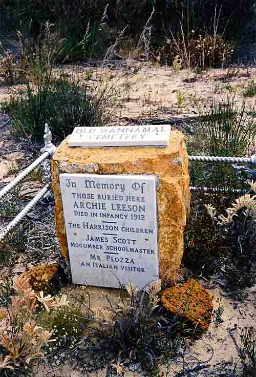 Rest Places: Armadale Congregational Church (moved to Minawarra Park), Broad Arrow Kurawah Cemetery, Bullfinch Cemetery, Burrumbar Station, Curarre Store Wyloo Station Ashburton, Davyhurst Cemetery, Ely Park Goomalling, Goongarrie, Granite Creek at Duracks Folly (headstone moved to Argyle Downs Homestead Museum), Karridale Pioneer Cemetery, Kookenwa Creek Muccan Station, Mt Grass Billabalong Station, Mt Fisher Station, Mt Newman Cemetery, Mulgi, Murchison River, Old Wannamal Cemetery, Onslow Pioneer Cemetery, Wheelara Well Coodardy Station