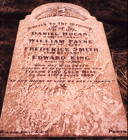 Resting Place: Broad Arrow Kurawah Cemetery, Deeside Manjimup, Erregulla Plains Mingenew, Errolls near Sandstone, Fields Find Cemetery, Glenvar Farm Wongan Hills, Grave Creek Mellenbye Station, Gum Creek Murchison Station, Karridale Pioneer Cemetery, Kooline Station Ashburton, Liveringa Station, Mardi Station, Mililya Station, Nungara Cemetery Sandstone, Ord River Station Cemetery, Well 37 CSR Canning Stock Route, Wickepin Pioneer Cemetery, Wooleen Station, Wurarga Dam