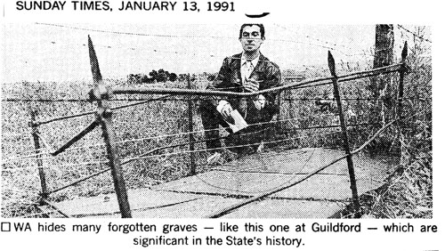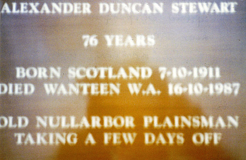 Rest Places: Ben Dhue Station East Pilbara, Broad Arrow Kurawah Cemetery, Condon Cemetery, Cull Culli Station Cemetery, Davyhurst Cemetery, Gordon Downs Station, Hamelin Cemetery Karridale, Henley Brook, Israelite Bay, Margaret River Station near Halls Creek, Markegin, Meentheena Station, Meka Station, Mt Newman Cemetery, Mourambine Churchyard, Mulline Cemetery, Mundrabilla Station Nullarbor Plains, Onslow Pioneer Cemetery, Uaroo Station Cemetery, Upper Swan, Well 49 Canning Stock Route
